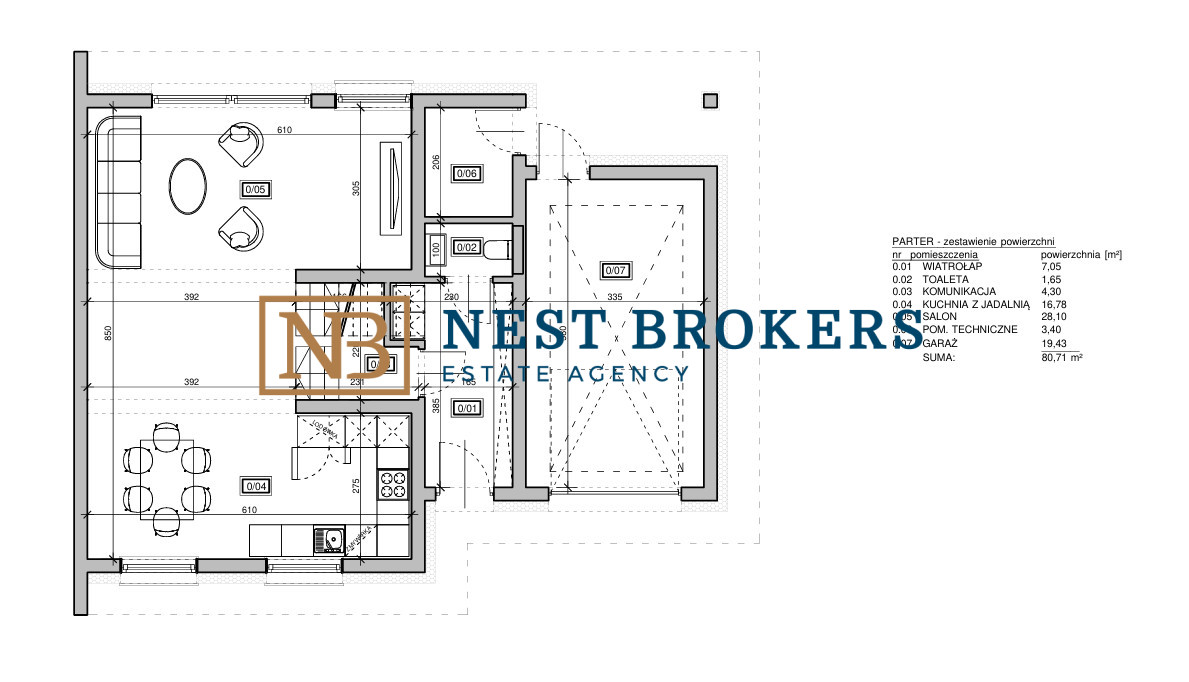 Łączna powierzchnia parteru: 80,71 m²