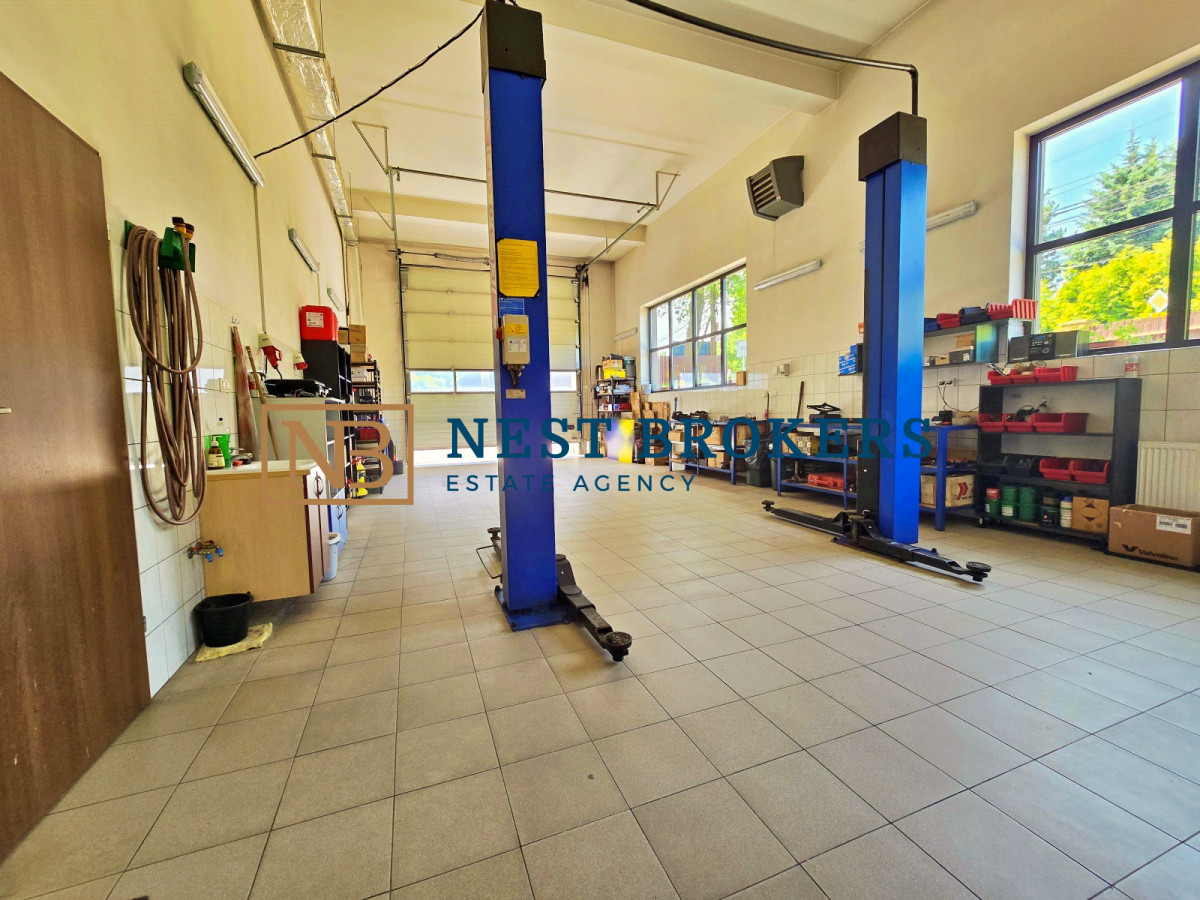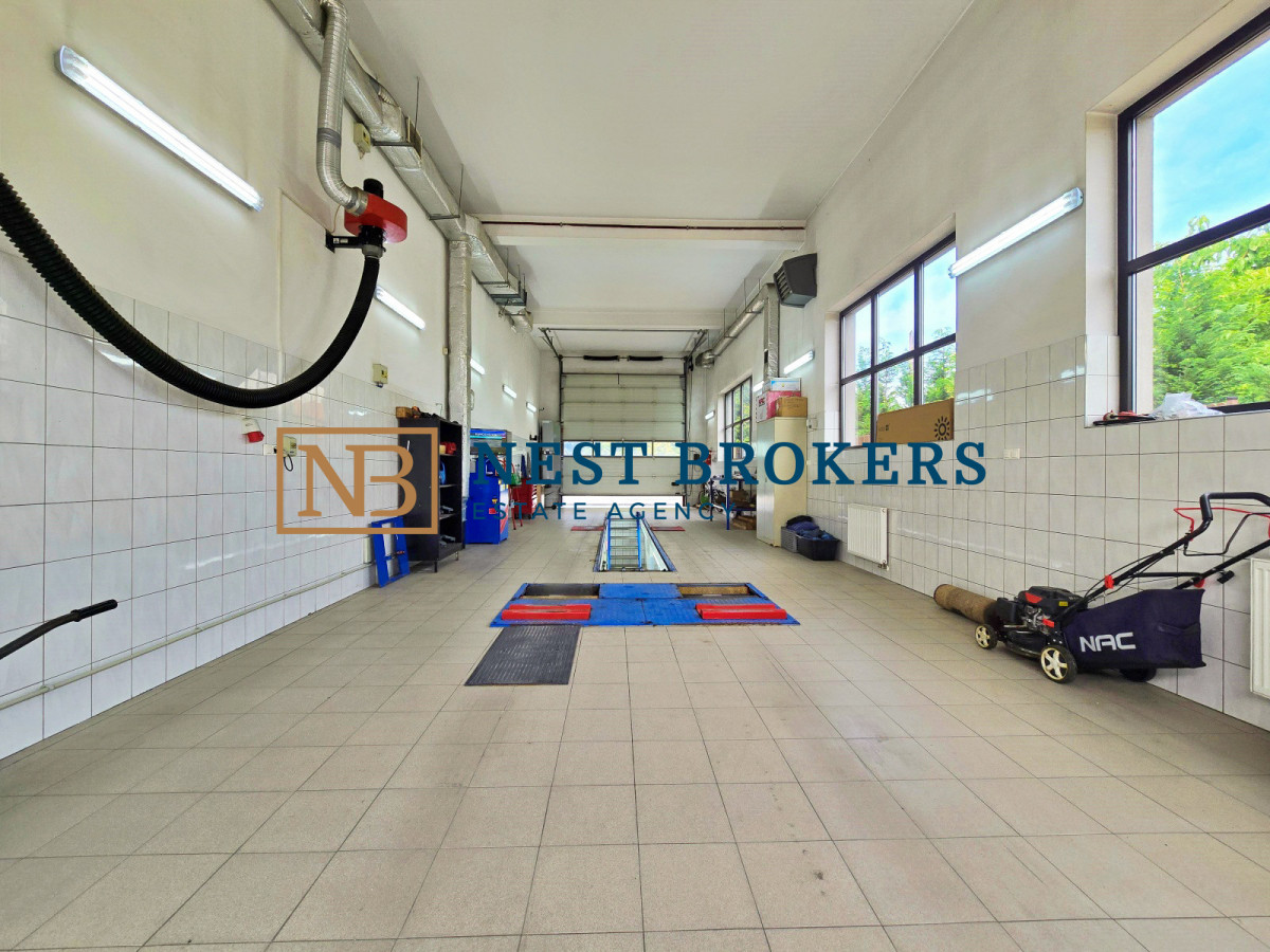 - Powierzchnia hal: Dwie połączone hale (70 m2 oraz 100 m2) z elektrycznymi bramami.