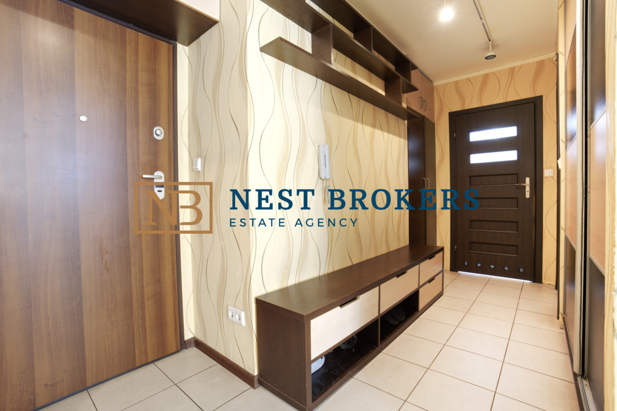 Dodatkowym atutem jest korytarz z zabudowanymi szafami, który zapewnia dużą ilość miejsca do przechowywania, pomagając utrzymać porządek i maksymalnie wykorzystać dostępną przestrzeń mieszkania.