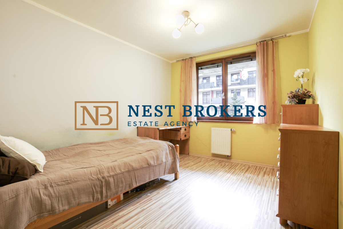 Sypialnia jest ustawna i wyraźnie większa niż w wielu nowych inwestycjach deweloperskich - bez problemu zmieści nie tylko łóżko, ale również dodatkowe meble, takie jak szafa, biurko czy toaletka, co daje większą funkcjonalność i wygodę.